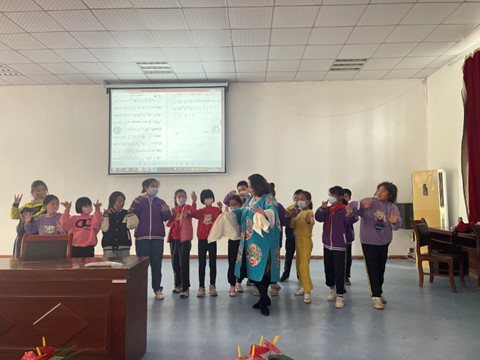 圖為賢繼紅老師在向?qū)W生們傳授茂腔的基本動作手勢。張昕 供圖