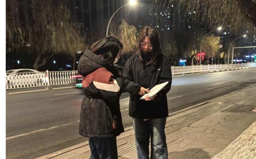 圖為實踐隊員在街道上向路人宣傳茂腔。楊轢文 供圖