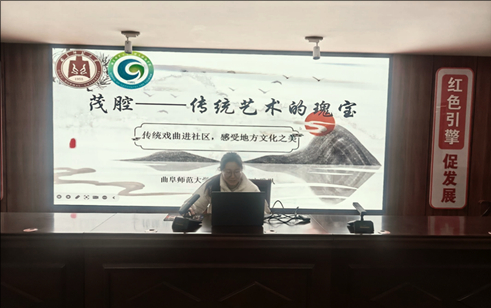 圖為實踐隊員在社區(qū)活動室宣傳茂腔。 吳俊瑤 供圖