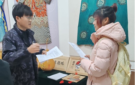 圖為實踐隊員向傳承人詢問當(dāng)?shù)孛坏奶攸c以及創(chuàng)新與發(fā)展情況,并邀請他填寫調(diào)查問卷。許田雨 供圖