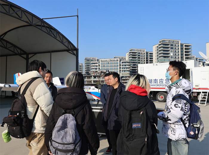 當(dāng)日下午,實(shí)踐隊(duì)成員前往中國(guó)移動(dòng)通信集團(tuán)湖南有限公司旗下的大王山無(wú)人機(jī)應(yīng)急基地繼續(xù)進(jìn)行調(diào)研。在這里,負(fù)責(zé)人向?qū)嵺`隊(duì)介紹了大型、中型及小型無(wú)人機(jī)的功能特點(diǎn)、零部件組成以及在災(zāi)害救援中的指揮調(diào)度方式和主要工作任務(wù),并分析了無(wú)人機(jī)相對(duì)于衛(wèi)星監(jiān)測(cè)的優(yōu)勢(shì)與存在的挑戰(zhàn)。