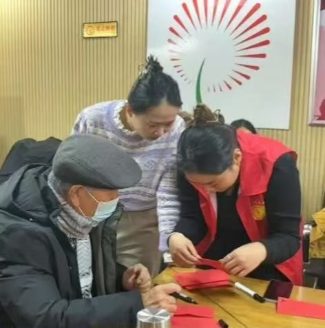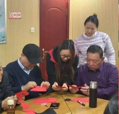 活動室內,一場溫馨且充滿文化韻味的剪窗花活動正在進行。志愿者們先是細致地向老人們介紹剪窗花的基本步驟與技巧,然后來到老人們身邊,用耐心作剪刀,以愛心為紙墨,拿起一張張紅色宣紙,折了幾折,再用筆輕輕描著圖案,耐心地教老人們剪窗花。