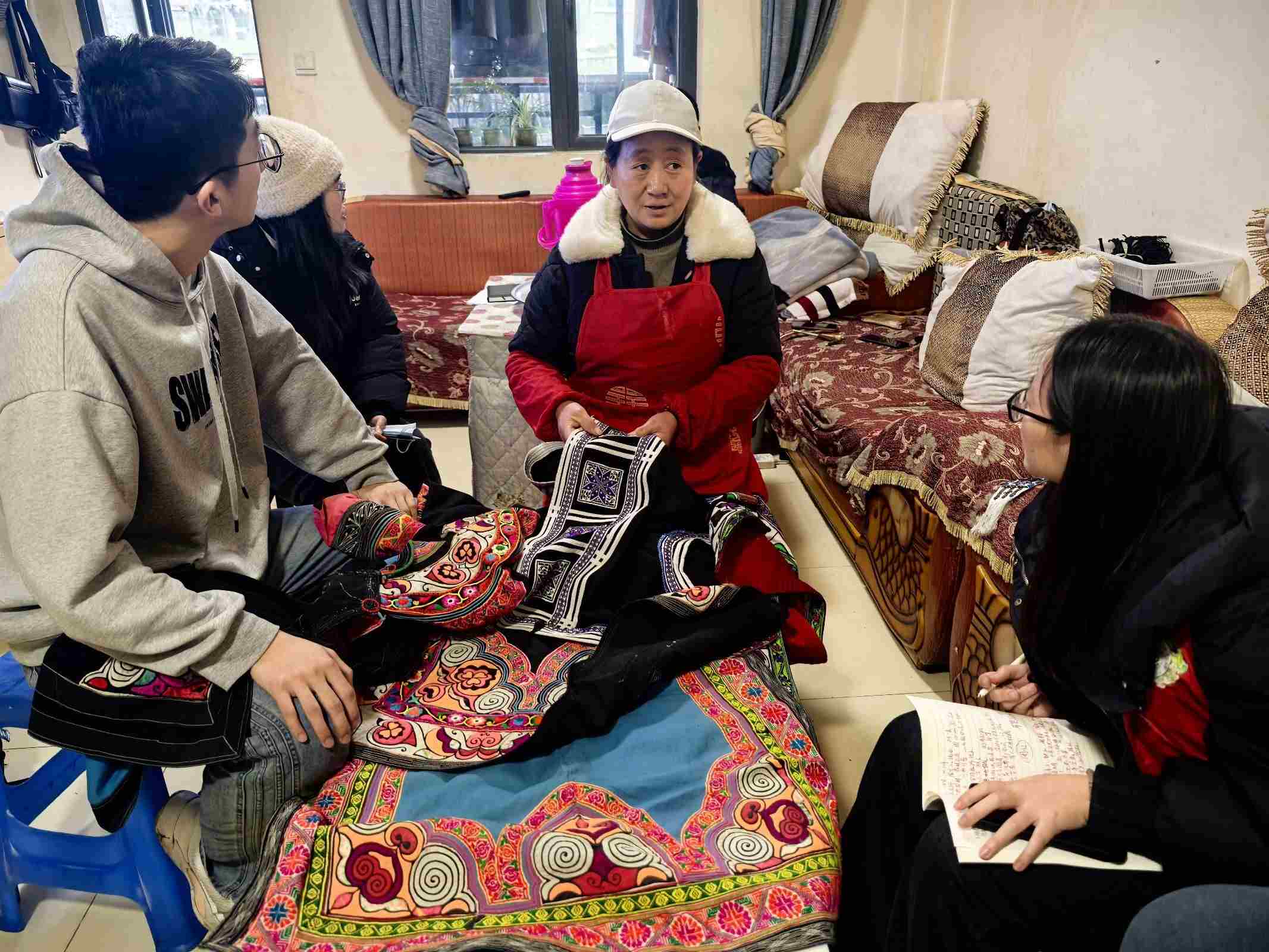 1月18日,團(tuán)隊(duì)聯(lián)動(dòng)此山文創(chuàng)工作室,深入開(kāi)展了文化調(diào)研活動(dòng)。支教隊(duì)成員走訪了金銀山社區(qū)的彝繡傳承人,對(duì)彝繡的主要技法、服飾文化以及傳承現(xiàn)狀進(jìn)行了全面而深入的探究。通過(guò)與傳承人的親切交流,支教隊(duì)成員深刻領(lǐng)略了彝族文化的獨(dú)特韻味與深厚底蘊(yùn),為后續(xù)的非遺文化產(chǎn)品設(shè)計(jì)與推廣積累了寶貴的一手資料。此次文化調(diào)研不僅有助于推動(dòng)彝族文化的傳承與發(fā)展,更為支教隊(duì)成員提供了寶貴的實(shí)踐機(jī)會(huì),提升了他們的文化素養(yǎng)與創(chuàng)新能力。基于此山文創(chuàng)工作室的協(xié)助,團(tuán)隊(duì)將設(shè)計(jì)一系列彝族非遺文創(chuàng),為當(dāng)?shù)匚幕瘋鞒惺聵I(yè)添磚加瓦。