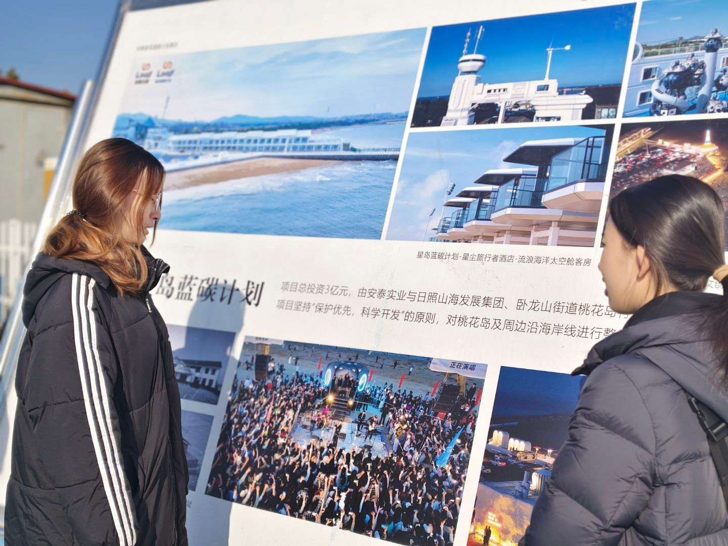 圖為實踐隊員問詢市民對碳排放的認識情況。尹新穎 供圖1月11日,實踐隊員們集體前往位于桃花島的“星島藍碳計劃”主題樂園,分工合作展開調研。“星島藍碳計劃”是全國首家將低碳環保理念轉變為線下實體的“環保+科幻IP”主題樂園。據實踐隊員了解,“星島藍碳計劃”屬于旅游業與農業相融合的項目。多年前,該碼頭主要用于漁業養殖、漁民出海捕魚,土地利用形式比較單一。而如今,該區域積極發展旅游業,建成了星島奇幻樂園、星塵旅行者hotel、流浪海洋太空艙、威士忌酒吧等以低碳理念為主的功能區,吸引了大量的游客。實踐隊員們還觀察到,景區設施的屋頂上安裝了大量的太陽能板,有效利用了太陽能、風能等清潔能源。同時,也向游客傳播了低碳環保理念,促使游客在游玩過程中增加對低碳生活方式的關注,讓游客在日常生活中能采取更多節能減排措施,從而間接減少碳排放。
