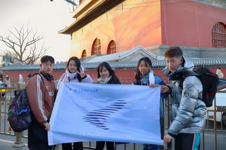 1月13日,拾文思源實踐隊在北京航空航天大學新主樓門前進行了集合,其中一組任務為:拜訪內聯升傳承人、北京民燈傳承人、北京風箏傳承人以及探尋中軸線沿線景山-萬寧橋-鐘鼓樓物質文化遺產建筑。