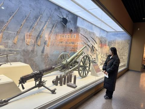 在八路軍太行紀念館內,團隊成員懷著崇敬的心情,緩緩穿行于各個展廳之間,仔細參觀調研,目不轉睛地觀看著一幅幅歷史照片、一件件珍貴文物,仿佛穿越時空,回到了那個戰火紛飛的年代。