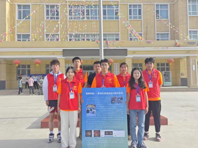 2025年6月6日,新疆政法學院慧眼明察實踐團在指導老師劉強、董增的帶領下深入新疆南疆第三師圖木舒克市四十四團二連、三連,開展了一場意義非凡的黃斑眼病科普活動,實踐隊員攜帶黃斑區病理特征AI哨兵系統現場檢測居民眼底圖片是否患有年齡性黃斑病。此次活動旨在提高當地中老年人對黃斑眼病的認知,增強他們的眼部健康意識,守護他們的視界。