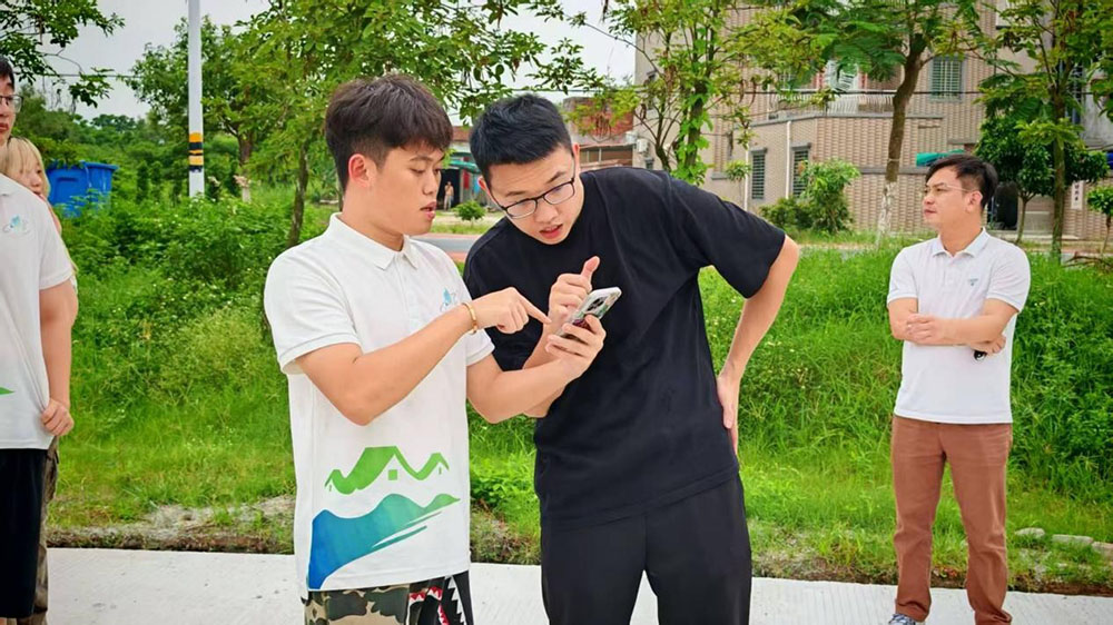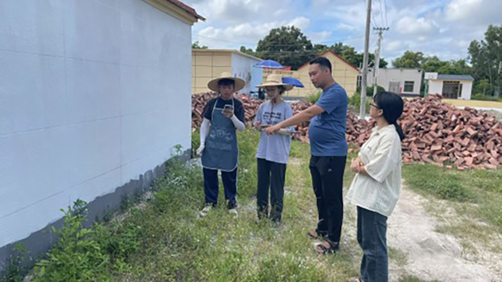 實踐隊隊長胡凌濤與符主任對墻繪細節(jié)進行溝通 工作人員/攝