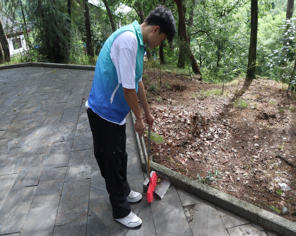 隨后,成員們手持掃帚,懷著崇敬之情走向烈士墓碑區,認真清掃雜物。過程中,大家表情凝重,有的眼泛淚花,以質樸行動致敬先烈、寄托緬懷。