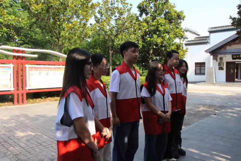 在蒼松翠柏環繞的江上青烈士雕像前,當地駐村周全書記佇立講解,以凝練的語言回溯江上青從投身革命宣傳到深入敵后建立抗日根據地的崢嶸歲月。老師通過講述烈士以筆為戈喚醒民眾、以熱血踐行理想的感人事跡,將那段波瀾壯闊的歷史娓娓道來。隊員們凝神聆聽,肅穆的氛圍中,革命先輩的精神力量跨越時空,在年輕一代心中激蕩共鳴。