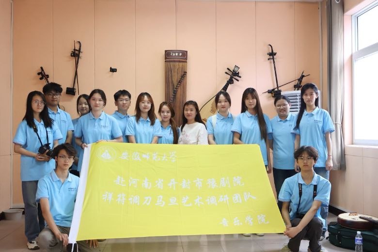 在豫劇排練廳內,調研團圍坐聆聽豫劇老師們現場示范《轅門外三聲炮如同雷震》這一片段,“板鼓是豫劇樂隊的靈魂,手指要發力,手腕要靈活,力度要隨唱腔起伏”,老師邊講解邊示范。我們認真記錄要點,并親手嘗試敲擊鼓點,感受戲曲鑼鼓經的韻律節奏。