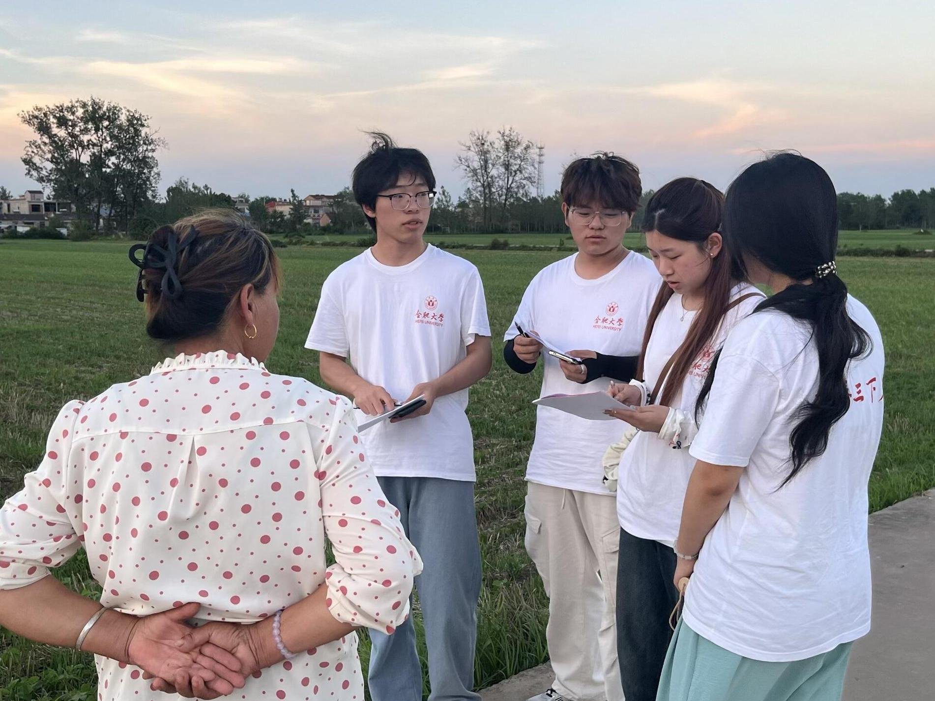 當夕陽為田野鍍上金邊,團隊帶領學生走進校園周邊農田開展社會實踐。田間地頭間,學生們手持記錄本,圍繞 “玉米灌溉頻率”“病蟲害綠色防治技術”等問題與農民伯伯深入交流,細致記錄土壤墑情、作物長勢等田間數據。志愿者借此契機打造“田間思政課”,引導學生在觀察農耕實踐中理解“誰知盤中餐”的深意,在泥土氣息中感知鄉村振興的時代圖景,推動課本知識與生產實踐的深度融合。