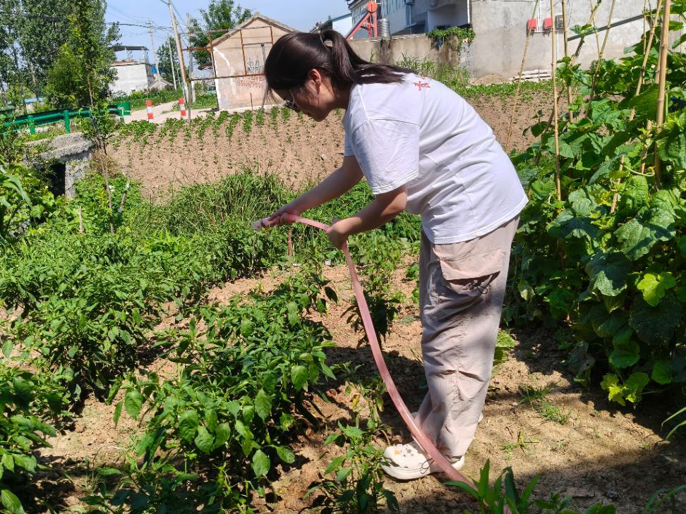 上午10時,驕陽炙烤下的陡張村農田,涌動著青春力量。團隊成員手持工具,深入蔬菜種植區,開啟助農采摘與澆灌工作。團隊成員分工明確、配合默契,彎腰勞作的身影與蔥郁的菜田相互映襯,專注投入的神情定格成最美的畫面。盡管驕陽似火,汗水不斷浸濕衣衫,但大家用辛勤的汗水幫助農戶緩解勞作壓力,在躬身實踐中深刻體會到“粒粒皆辛苦”的內涵,更讓青春在這片希望的田野上綻放出絢麗的光彩。