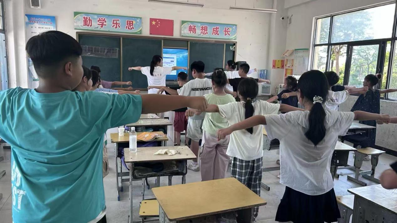午后 14 時 30 分,充滿活力的趣味互動課堂同步進行。團隊成員帶領學生們進行互動游戲,整齊劃一的動作、朝氣蓬勃的姿態,展現了昂揚的精神風貌。孩子們興致勃勃地跟隨模仿,課堂氣氛熱烈歡快。團隊成員巧妙將知識融入游戲,引導孩子們在歡樂中學習、在互動中成長。