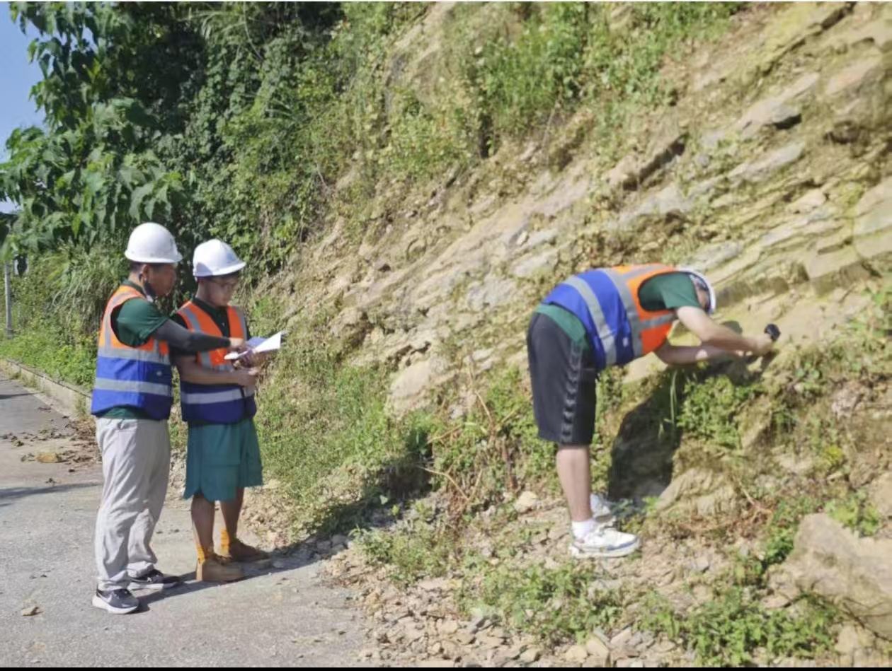 圖3對邊坡進行勘測在檢測過程中,團隊成員走訪當地村民,詳細了解災害對日常生活的影響。“你們來幫我們檢測滑坡,真是太好了!”村民王大爺握著隊員的手激動地說。團隊將根據調查結果,為當地提供科學合理的治理建議。