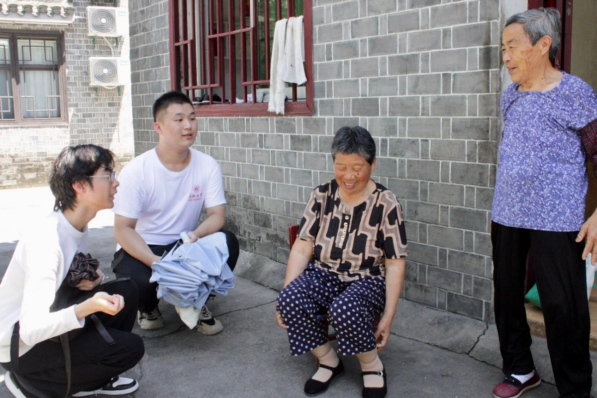 圖為調(diào)研組成員在獨(dú)山鎮(zhèn)紅軍街與村民訪談。張欣悅 供圖