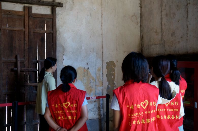 7 月 5 日上午,江西財(cái)經(jīng)大學(xué)外國(guó)語學(xué)院“語鄉(xiāng)行”實(shí)踐服務(wù)隊(duì)踏上了一場(chǎng)意義非凡的紅色之旅,來到了江西省撫州市樂安縣紅色標(biāo)語博物館。在這里,隊(duì)員們仿佛被時(shí)光的長(zhǎng)河帶回到了那個(gè)波瀾壯闊的革命年代,一條條飽經(jīng)滄桑的紅色標(biāo)語,宛如歷史的燈塔,照亮了他們的心靈,也讓他們?cè)谛聲r(shí)代的征程中汲取了奮進(jìn)的力量。