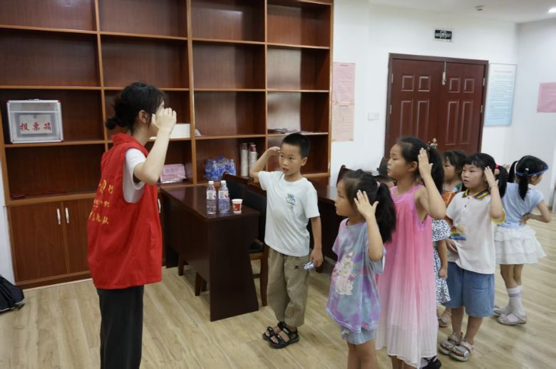 隨后,志愿者們巧妙地將英語詞匯“march(行軍)、salute(敬禮)、stop(靜止)”融入到一個紅色主題互動游戲中,通過肢體化指令強化了英語詞匯記憶,更在游戲中培養了紀律意識。