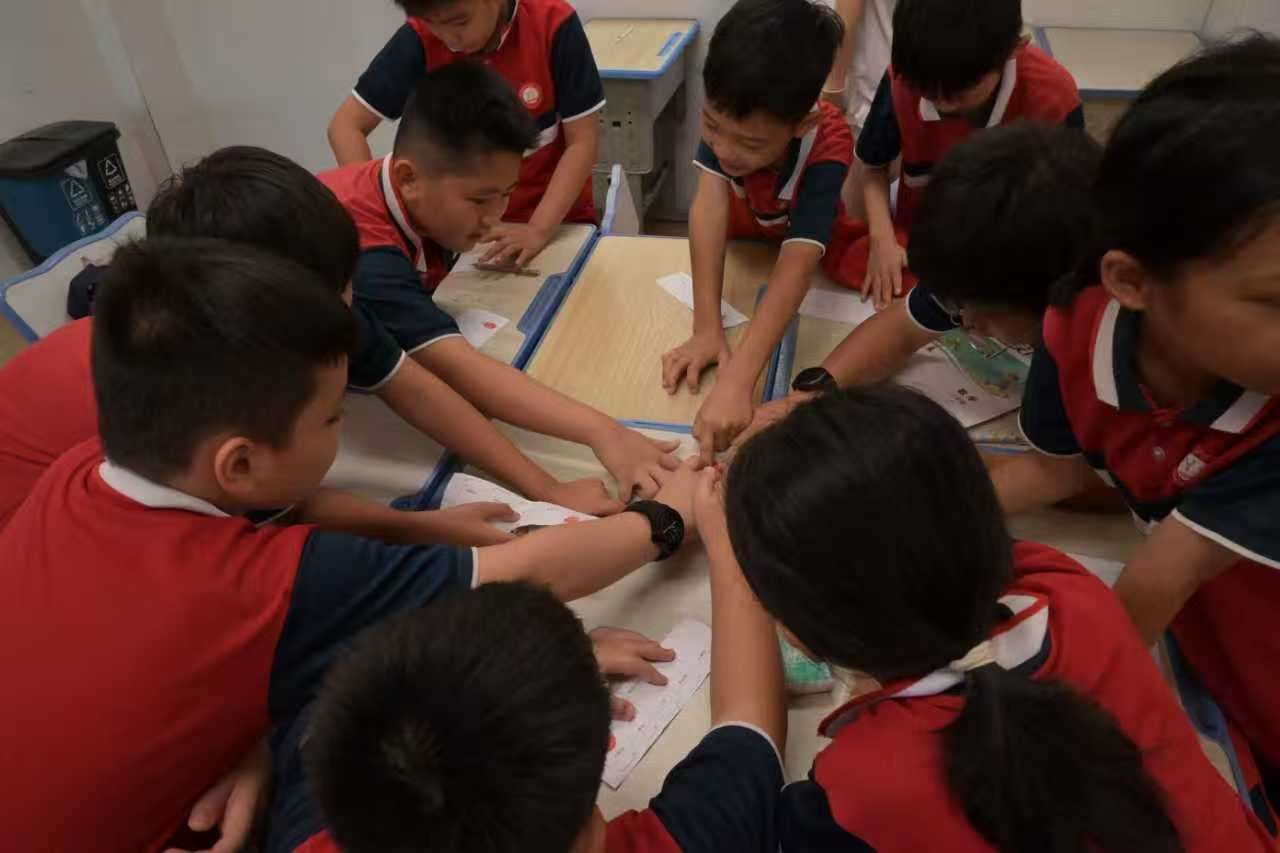 圖為學生們印下自己的手印。蔣京彤供圖。“指紋就像刻在身體上的獨特ID卡,終身不變!”盧璽蔓總結道。她進一步引導孩子們聯想指紋鎖、手機解鎖等日常應用,并拓展介紹虹膜、聲紋等生物識別技術,在孩子們心中埋下生物科技的種子。
