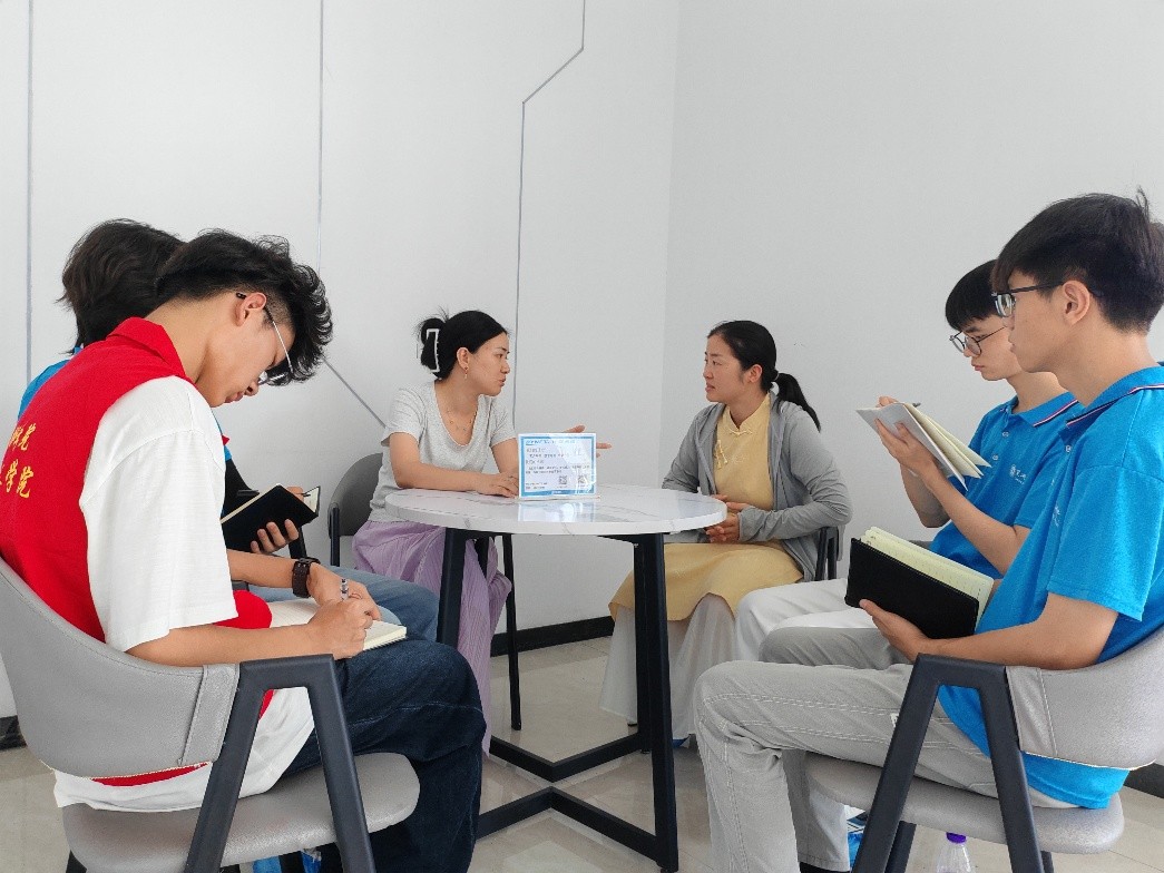 圖為團隊成員與企業代表交流青年大學生在基層就業情況。顧連杰 供圖。