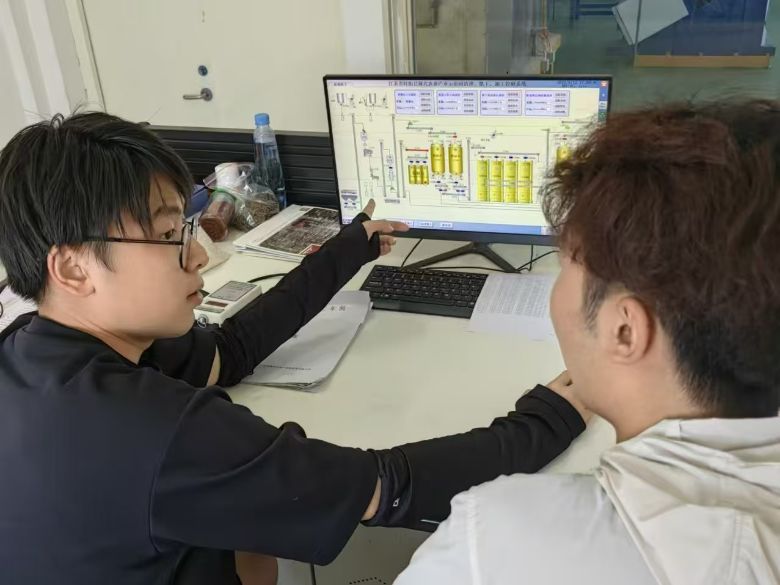 圖為團(tuán)隊(duì)成員來到產(chǎn)業(yè)中控中心了解控制原理。陳霖 供圖