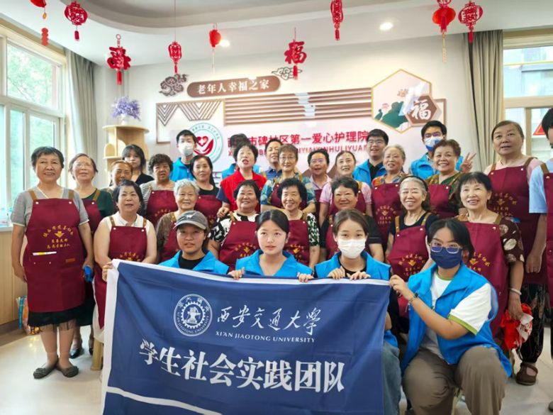 晨光熹微中,一群身著紅馬甲的青年學子踏著朝露走進護理院大門。七月的風裹挾著梧桐葉的沙沙聲,為這場跨越年齡的相逢奏響序曲。7月11日清晨,西安交通大學交心行跡實踐團隊前往碑林區第一愛心護理院開展社會實踐活動,通過陪伴老人聊天和包餃子,為老人們增添一份熱鬧與關懷。