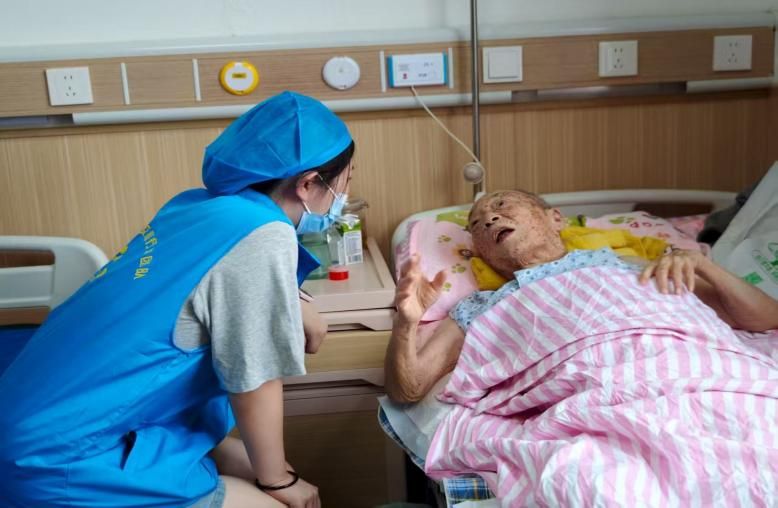 隊員們分成幾個小組,或蹲在輪椅旁,或坐在床沿邊,一起與老人們話家常。房間里的交談聲、歡笑聲交織,陌生感在一次次眼神交匯中漸漸消融