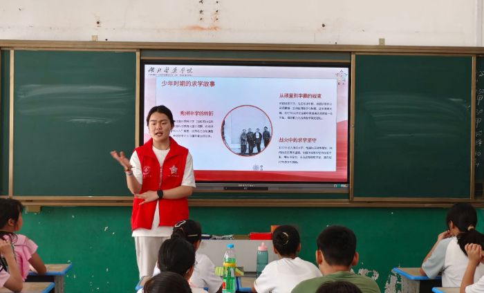 在活動期間,實踐隊的志愿者們精心策劃,為孩子們帶來了豐富多樣的課程與活動。他們用生動的語言和鮮活的事例,為同學們講解“兩彈一星”功勛人物的偉大事跡,從錢學森沖破重重阻礙回國,到鄧稼先隱姓埋名投身核彈研發,一個個故事深深打動著孩子們的心,讓他們真切感受到老一輩科學家們熱愛祖國、無私奉獻的崇高精神。
