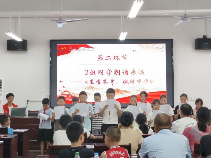 12天里,實踐隊通過“兩彈一星”歷史講堂、衛星模型制作、科學實驗互動等多樣形式,讓孩子們逐步走近那段艱苦卓絕又輝煌燦爛的歷史。而結班儀式上,這些積累的情感與認知化為了動人的表達:一班和二班同學合作的《算盤上的蘑菇云》,以情景劇再現了老一輩科學家用算盤演算核彈數據的場景,簡陋工具與偉大成就的反差,讓“自力更生”四個字直抵人心;二班同學的朗誦《星耀蒼穹,魂鑄中華》,用鏗鏘語調體現元勛們隱姓埋名、以身許國的壯舉,詮釋了“無私奉獻”的重量。