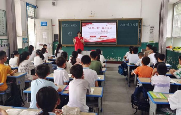 活動在莊嚴的開班儀式中拉開帷幕。丁家營鎮小學校長在致辭中勉勵同學們“以科學家為榜樣,爭做新時代追夢人”。實踐隊精心設計課程,通過10場專題宣講,系統介紹了鄧稼先、錢學森、郭永懷等10位“兩彈一星”功勛科學家的感人事跡。課堂上,孩子們聚精會神聆聽“隱姓埋名搞科研”“沙漠深處獻青春”的故事,踴躍參與互動問答。“原來科學家也會經歷失敗,但他們從不放棄!”五年級學生王同學在課后感慨道。