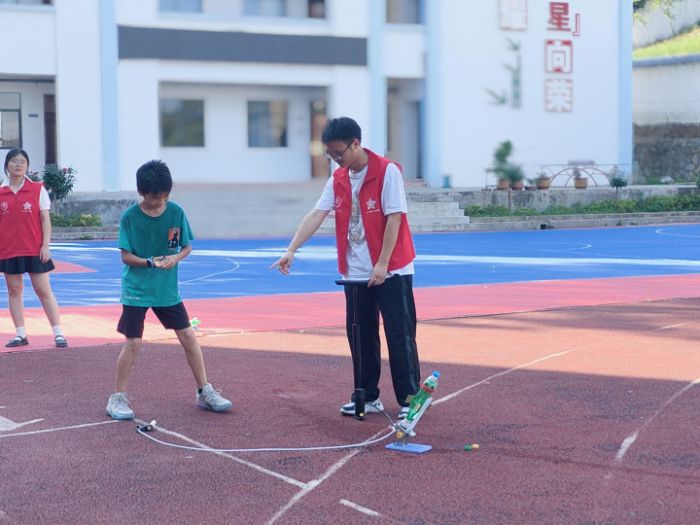 除了理論講解,實踐隊還精心準備了一系列動手實踐活動,讓科學知識“活”起來。在“水火箭制作”環節,隊員們帶領孩子們利用塑料瓶、吸管等簡易材料,親手組裝能借助水和氣壓升空的“火箭”,在動手過程中講解反沖力等物理原理,當孩子們看著自己制作的水火箭“嗖”地沖上天空時,現場歡呼聲此起彼伏;“火箭繪畫”和“火箭拼圖”活動則讓孩子們充分發揮想象力,用畫筆勾勒心中的航天夢想,用拼圖拼接對宇宙的向往,一張張色彩斑斕的畫作、一幅幅完整的拼圖,承載著孩子們對科學的好奇與憧憬。