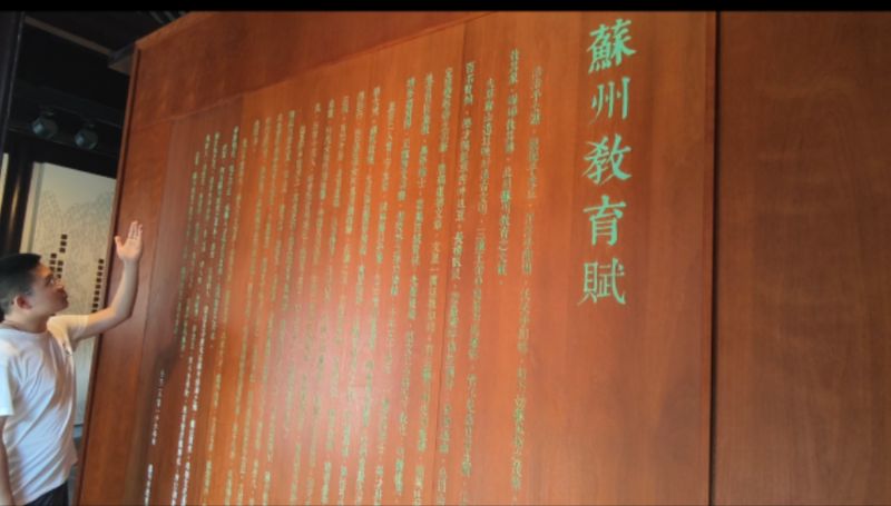 推開柴園古樸的木門,仿佛踏入一條時光的河流。蘇州教育博物館坐落于此。實踐團成員在茍鑫鑫帶領下,深度挖掘柴園的歷史內涵。茍鑫鑫和大家介紹道,北宋景祐二年(1035年),范仲淹放棄風水寶地建私宅,以“立師資,聚群材,陳正道”為理念,慨然捐地創辦蘇州府學,點燃了蘇州官學教育的星火。明清兩朝,蘇州以51名狀元、1882名進士冠絕天下,成就“狀元之鄉”美譽。