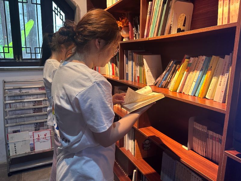 圖為團隊成員于館內私塾室共讀詩詞作品、學習姑蘇文化。成一涵供圖