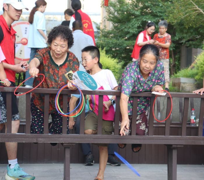 套圈區(qū),老人們瞄準(zhǔn)目標(biāo)輕輕一拋,套中時(shí)便孩提般雀躍。簡(jiǎn)單的游戲暗藏挑戰(zhàn),老人們?cè)诓粩嗟膰L試中掌握了技巧,命中率大幅度提高,每一次成功都讓他們喜笑顏開,現(xiàn)場(chǎng)氣氛熱烈。