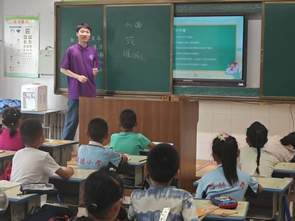 炎熱的夏季,一直是安全事故的頻發期,暑期安全教育一直是重中之重,同時為了營造良好的學習環境和融洽的學習氛圍,減小師生間的陌生感,7月16日上午,山東理工大學愛之傳承暑期社會實踐團在四女寺鎮明德小學舉辦了“開班第一課”主題活動。