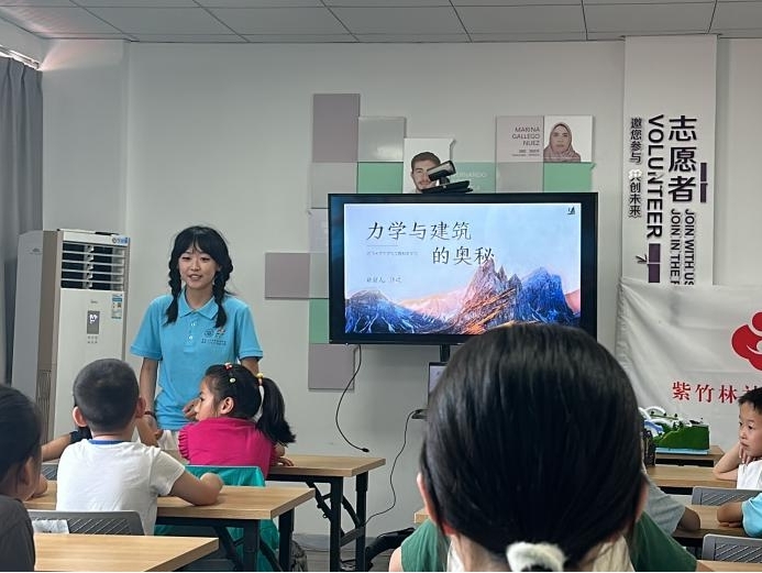 社區科普:趣味互動傳遞科學薪火7月16日,實踐團隊前往南京本地的紫竹林社區,面向小學生開展古建筑力學科普宣講活動。通過精心設計的有獎問答環節,充分調動了孩子們的學習積極性,現場氣氛十分活躍。活動的亮點是親手拼接橋梁模型的互動環節,孩子們在團隊成員的指導下,通過動手實踐深入了解建筑力學結構的基本原理。從簡單的梁式結構到復雜的拱橋設計,每一個拼接過程都讓孩子們對力學知識有了更加直觀的認識。在模型搭建過程中,團隊成員耐心講解承重分布、結構穩定性等基礎概念,讓抽象的力學原理變得具體可感。