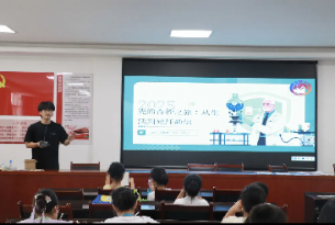 光學(xué)課堂上,團(tuán)隊(duì)成員以生活中常見(jiàn)的光現(xiàn)象為切入點(diǎn),從彩虹的形成講到影子的變化,再逐步深入到光纖通信的奧秘。他用生動(dòng)的比喻將抽象的原理具象化,告訴孩子們 “光就像會(huì)跑的信使,能帶著信息傳到很遠(yuǎn)的地方”,為孩子們打開(kāi)了一扇通往光學(xué)世界的全新窗口,讓他們?cè)诤闷媾c驚嘆中感受科技的魅力。