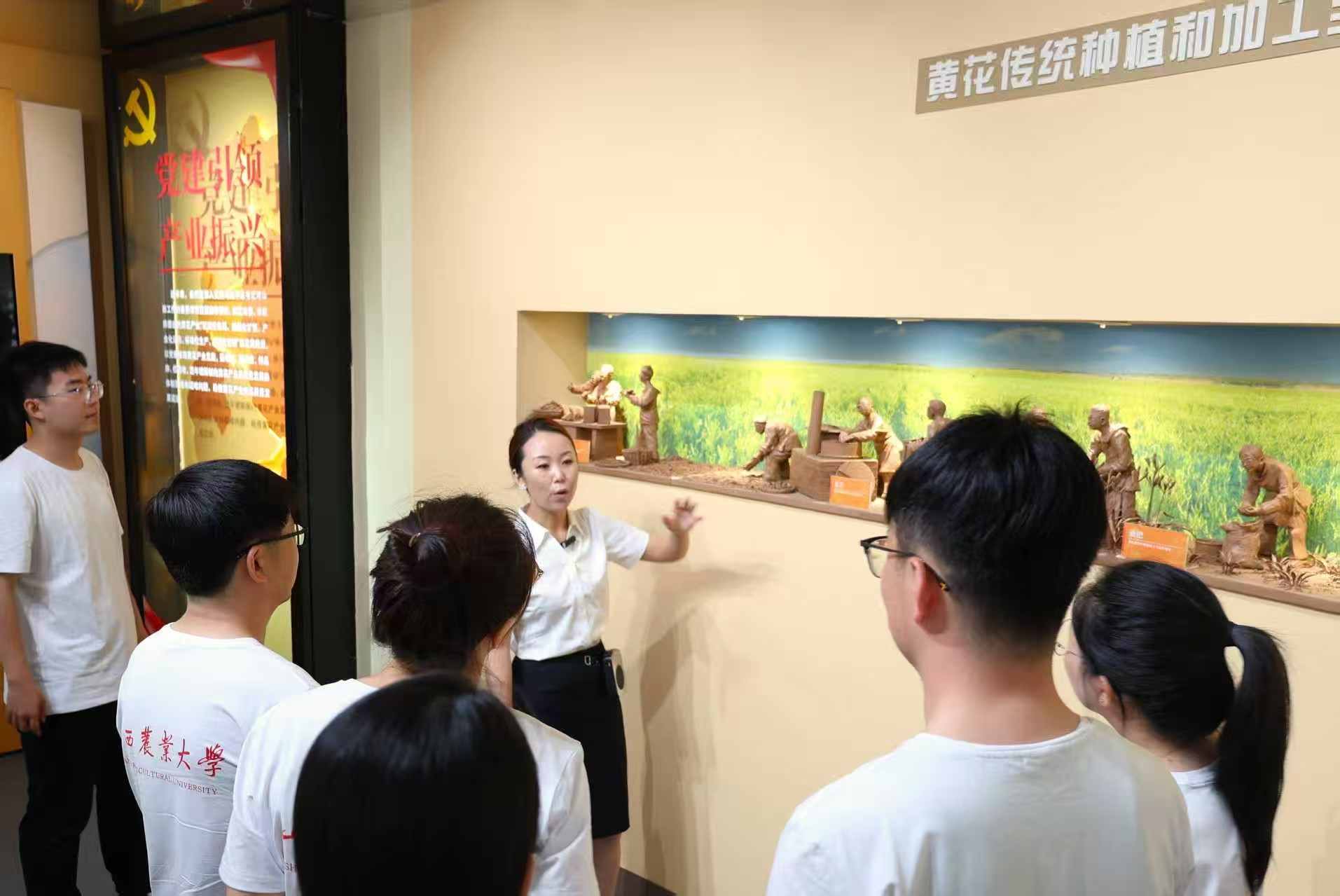 跟隨講解員的步伐,實(shí)踐隊(duì)員們了解到山西農(nóng)業(yè)大學(xué)高寒區(qū)作物研究所成功攻克了黃花種苗組培繁育技術(shù),破解了高寒地區(qū)黃花種植的技術(shù)瓶頸,為產(chǎn)業(yè)規(guī)模化發(fā)展提供了堅(jiān)實(shí)支撐。隊(duì)員們聆聽時(shí)紛紛記錄,他們深知這項(xiàng)技術(shù)的突破不僅僅是科研實(shí)力的見證,更是對科研團(tuán)隊(duì)“把論文寫在田間地頭”的敬佩。實(shí)踐尾聲,隊(duì)員們參觀了黃花產(chǎn)品展示區(qū),品嘗了以黃花為原料的特色農(nóng)產(chǎn)品。黃花茶、黃花啤酒、黃花醬等多樣產(chǎn)品,展示了黃花深加工產(chǎn)業(yè)的創(chuàng)新成果,真正意義上實(shí)現(xiàn)了“黃花”向“致富花”的偉大轉(zhuǎn)變。展示區(qū)負(fù)責(zé)人介紹,這些產(chǎn)品不僅暢銷國內(nèi)外市場,還通過電商平臺拓展銷路,助力產(chǎn)業(yè)鏈延伸與村民增收。實(shí)踐隊(duì)通過直觀體驗(yàn),感受到農(nóng)產(chǎn)品多元化開發(fā)對產(chǎn)業(yè)增值的重要意義。黃花千畝映朝陽,青春筑夢沃土香。通過此次社會實(shí)踐活動,實(shí)踐隊(duì)員們不僅感受黃花產(chǎn)業(yè)從傳統(tǒng)種植到科技賦能、產(chǎn)品創(chuàng)新的全鏈條發(fā)展,更是將習(xí)近平總書記"鄉(xiāng)村振興,青年先行"的號召轉(zhuǎn)化為實(shí)際行動。隊(duì)員們紛紛表示,作為新時(shí)代青年,應(yīng)主動擔(dān)當(dāng)鄉(xiāng)村振興的先鋒力量,讓青春在服務(wù)“三農(nóng)”的廣闊天地中綻放光彩。