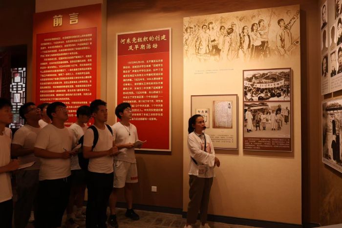 第二站,實踐隊員們來到堆云洞景區,踏訪這一承載深厚革命歷史底蘊的紅色遺址。這座隱匿于黃土高原溝壑間的獨特建筑群,不僅融合了鬼斧神工的自然奇觀與古樸典雅的古建藝術,更曾是晉南革命烽火的重要堡壘。在專業講解員引導下,隊員們穿梭于 “洞階相連如堆云” 的幽深結構,穿越時空聆聽歷史回響。革命先驅嘉康杰懷揣 “教育救國” 理想,在此創立 “平民學校”,打破封建制度桎梏,向農民和青年系統授業、傳播進步思想。展廳內,密閉印刷廠復原場景重現文件印刷環境,模擬糧倉、羊湯灶臺等生活場景,讓隊員們沉浸式體驗到革命先輩生活點滴。講解員介紹,每年有眾多黨員、學生及游客慕名前來研學,深刻體會“堅定信念、不畏艱險”的革命精神內核。