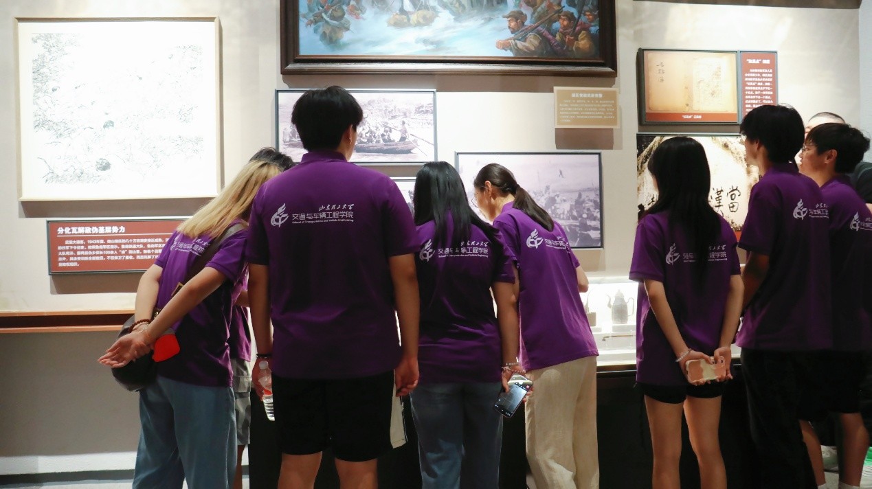 參觀尾聲,實(shí)踐團(tuán)全體成員在鐫刻著“鐵道游擊隊(duì)紀(jì)念館”的巍峨門楣下莊嚴(yán)列隊(duì)合影。青灰色的建筑墻體與青年學(xué)子堅(jiān)毅的目光交相輝映,鏡頭定格下歷史與未來的交匯瞬間。離島之際,湖風(fēng)拂過紀(jì)念館頂端的紅五星雕塑,如同當(dāng)年穿越蘆葦蕩的訊號(hào),將“聽黨話、跟黨走”的信念密碼,深深鐫刻在這群未來交通建設(shè)者的心間。他們將帶著微山湖的烽火記憶,在智能交通、裝備制造的新征程上,續(xù)寫新時(shí)代的“鐵道傳奇”。