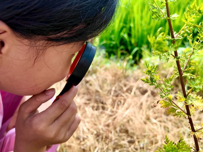 圖為學(xué)生手持放大鏡觀察植物 郭佳晨攝 。