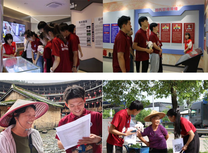 在南靖縣林則徐禁毒教育基地,實踐隊通過參觀歷史展區、體驗VR互動裝置、學習智慧禁毒系統,深入了解我國禁毒斗爭歷程和新時代禁毒工作成效。隨后,隊員們深入云水謠古鎮、保林村、元湖村等土樓村落,通過設置宣傳展臺、講解具體案例、發放宣傳手冊等方式,向村民和游客普及禁毒反詐知識。