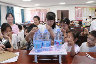“遇強則強,遇弱則弱”來形容非牛頓流體是再好不過的了,輕輕觸碰時柔軟如絲綢,用力敲打時卻堅硬如鐵。在隊員們的指導下小朋友們反復實驗,小心翼翼地調配淀粉與水的比例,終于找到了最佳配比。他們將調配好的非牛頓流體倒入容器中,向周圍同學一起分享成功的喜悅,一起感受科學的魅力。
