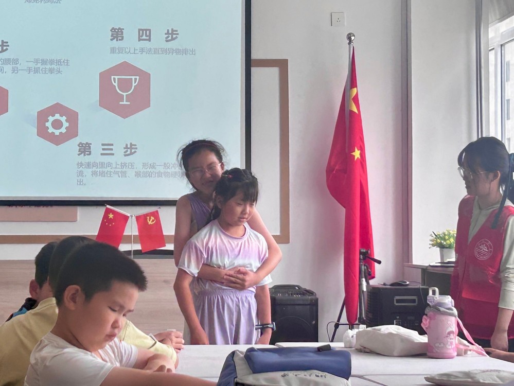 活動(dòng)最后,社區(qū)工作人員給每個(gè)孩子發(fā)了一張卡通急救流程圖。“夏天吃冰棒、西瓜、堅(jiān)果的機(jī)會(huì)多,學(xué)會(huì)這個(gè)方法,不僅能保護(hù)自己,還能幫助別人。”一堂課下來(lái),孩子們不僅認(rèn)識(shí)了氣道異物梗阻的危險(xiǎn),更掌握了實(shí)用的急救技能。這場(chǎng)“接地氣”的宣講,讓“救在身邊”的理念深深扎根在孩子們心中,為平安一夏增添了一份堅(jiān)實(shí)保障。