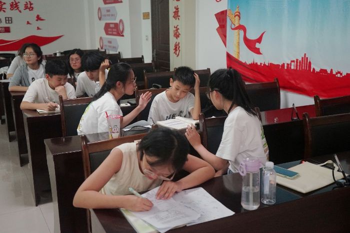 學業護航,溫故促知新。下午,實踐團將重心放在學業輔導上,針對同學們暑期作業中的薄弱環節進行查漏補缺。成員們一對一解答數學公式運用、語文作文構思等問題,通過細致講解幫大家攻克難題。