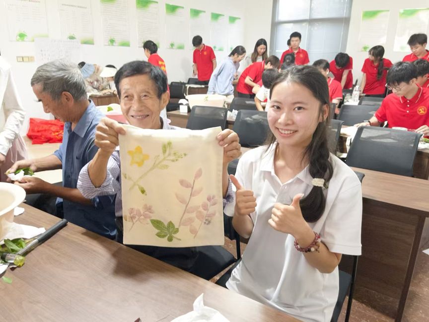 活動中,最動人的是老少同框的畫面。白發蒼蒼的奶奶教孫女辨認植物,年輕人幫著大爺調整葉片位置。原本陌生的面孔,因為拓染湊在一起,嘮著家常、分享竅門。張大叔說:“這活動好,年輕人帶我們玩新鮮玩意兒,咱也能跟上時代!” 這一場景,讓傳統技藝在代際交流里,有了新的傳承溫度。