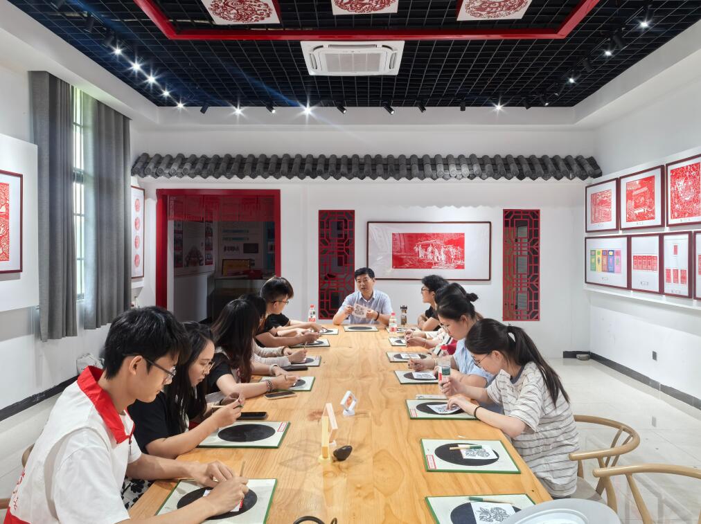 沉浸體驗(yàn),感受非遺魅力。實(shí)踐團(tuán)成員在非遺傳承人張仁高老師的指導(dǎo)下,于動(dòng)手實(shí)踐和親耳聆聽中感受非遺魅力。刻紙桌前,成員們屏息凝神,執(zhí)起刻刀,于方寸紙間游走,“柿柿如意”的紋樣逐漸躍然紙上;親手觸摸鼓面,學(xué)習(xí)擊打節(jié)奏,嘗試模仿韻味悠長(zhǎng)的唱段。“一刀一刻、一鼓一韻,親身體驗(yàn)后才真正懂得何為匠心,也更深刻理解了張老師‘讓文化在年輕人手中傳承下去’的執(zhí)著信念”。團(tuán)隊(duì)負(fù)責(zé)人李欣芯說(shuō)道。