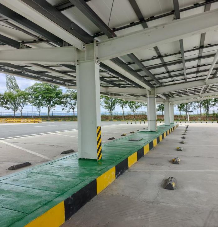 “光伏項目離車流越近,安全標準越要嚴苛。” 項目安全負責人表示,淳化服務區光伏設施構建了全方位防護體系。防火方面,每排光伏陣列配足量滅火器,采用高等級防火材料;鋼架結構參照特定地區標準,可抵御小型車輛撞擊;護欄選高規格型號,與路邊保持安全距離防侵入。