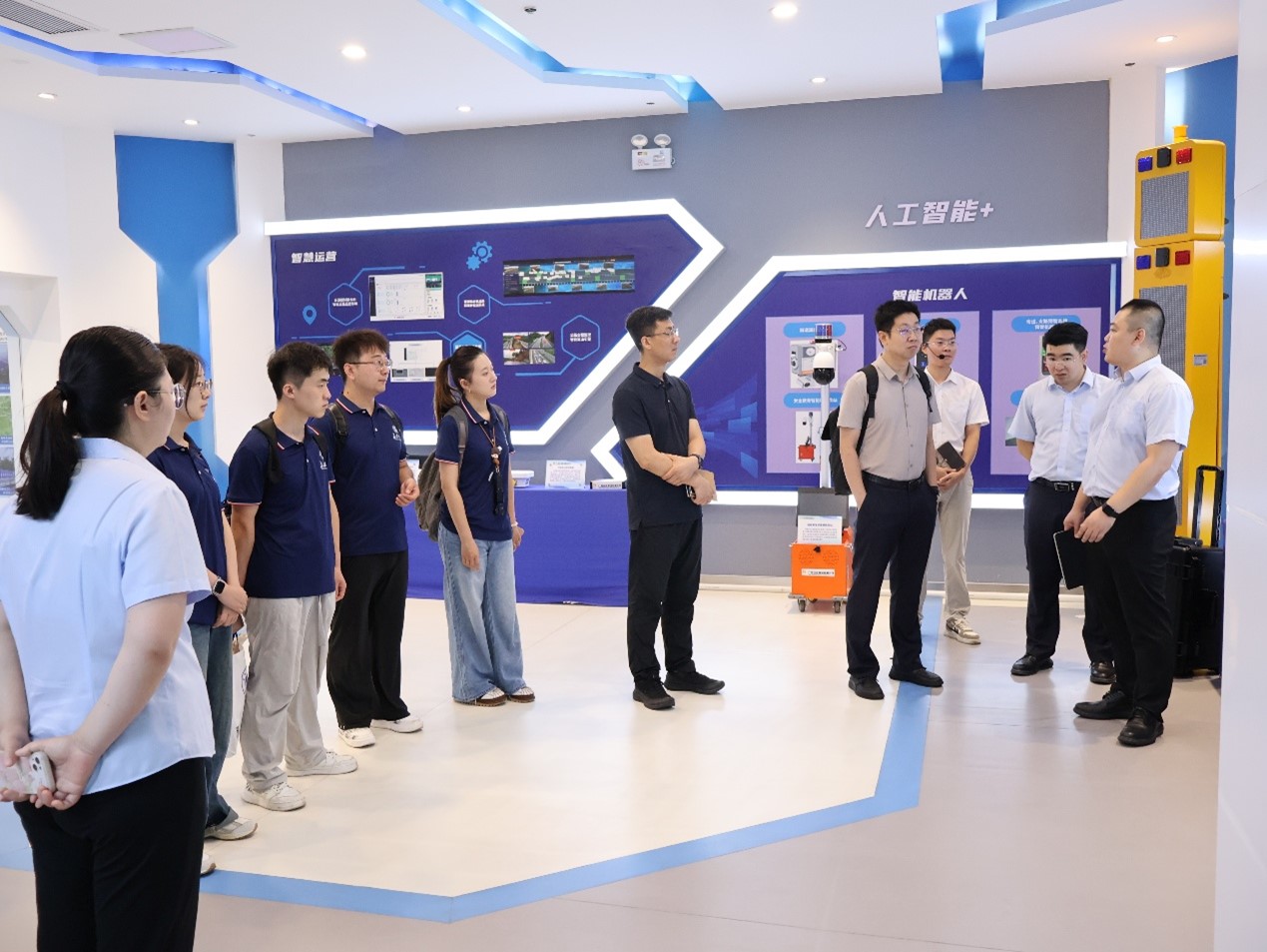 在廣西交科集團科技信息部部長黎力韜的帶領下,實踐隊成員首先參觀了“智創未來”科技展廳。隊員們通過生動的講解和豐富的展陳,零距離體驗了廣西交科集團在交通科技領域的創新成果。展廳重點展示了基于Deepseek-R1研發的交通垂直領域智能體——“科寶”,它深度整合公路建設、管理、養護及服務全流程規范,構建一體化業務數據庫,滿足多場景應用需求。隊員們還沉浸式了解了集團自主研發的“交通基礎設施數智建管養一體化平臺”。該平臺集高精數字資產模型、智慧建管養、事件應急預警及公眾服務于一體,能有效助力路網結構物實現智慧管養、分析決策、應急預警等可視化管理,顯著提升業務效率。