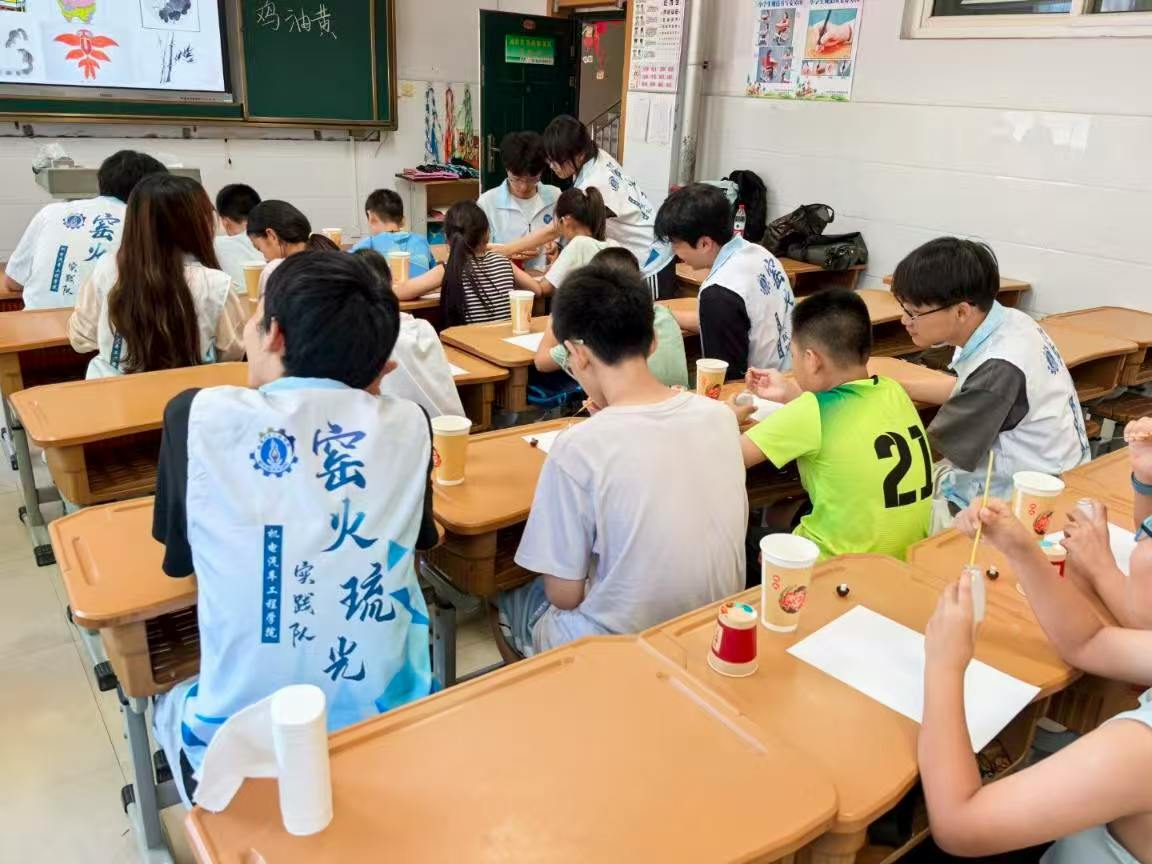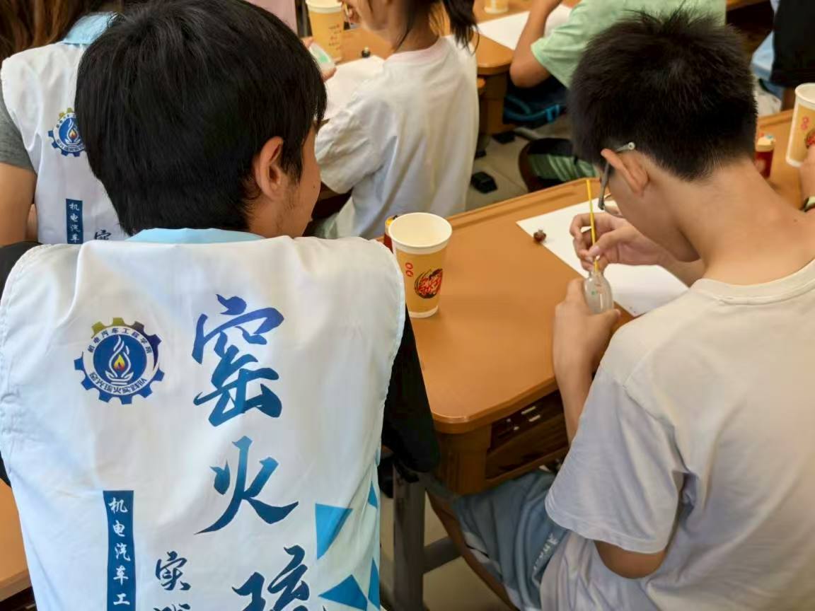 宣講結束后,實踐隊精心組織了魯派內畫體驗環節。在隊員們的耐心指導和幫助下,孩子們拿起特制的內畫筆,嘗試在透明瓶胚內進行勾畫。他們神情專注,小心翼翼地運筆,親身體驗了這項省級非物質文化遺產的獨特魅力。通過親手實踐,孩子們對魯派內畫藝術有了更直觀和深刻的認識。